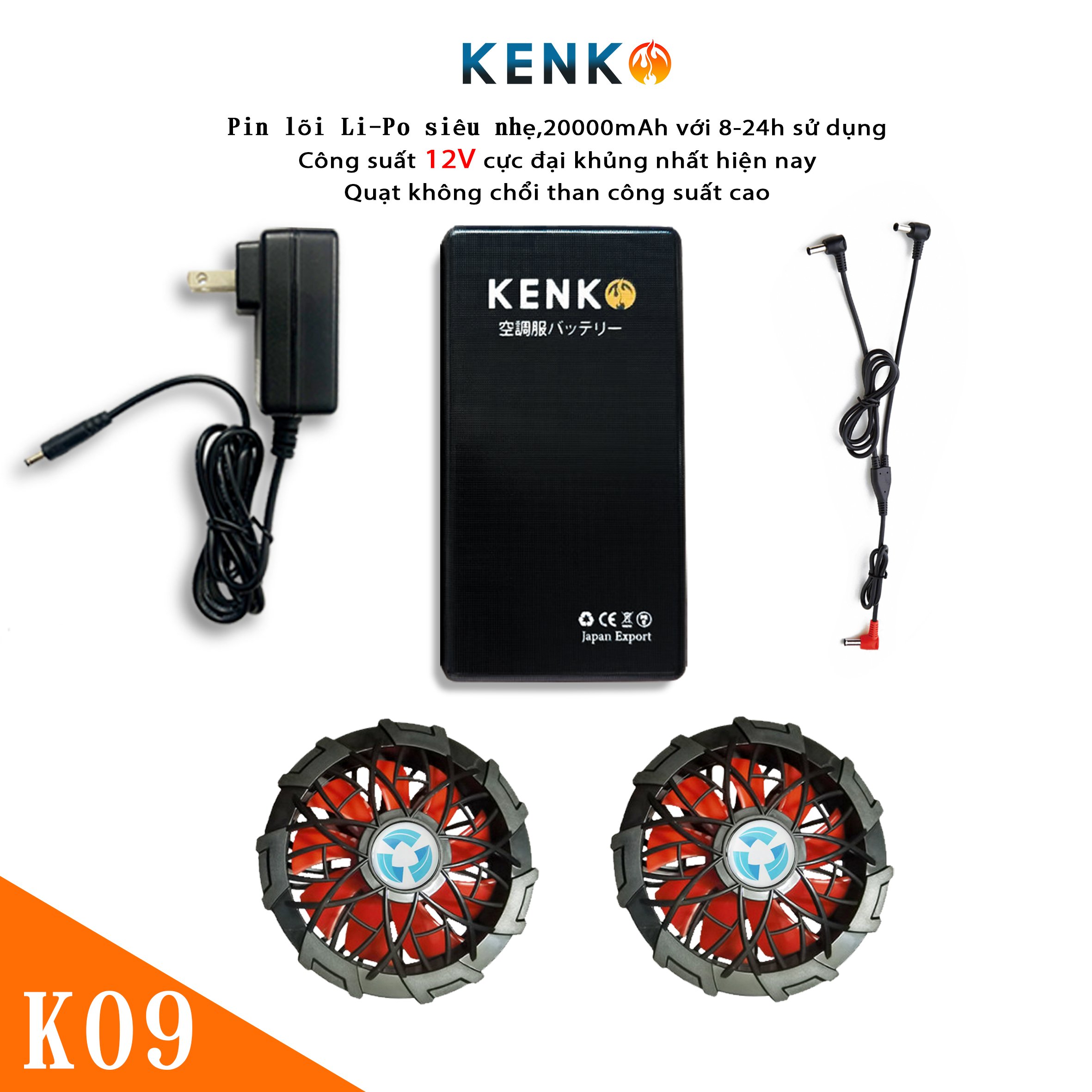 Sạc pin áo điều hòa KENKO Nhật Bản 100-240V siêu bền, bảo vệ pin lâu chai